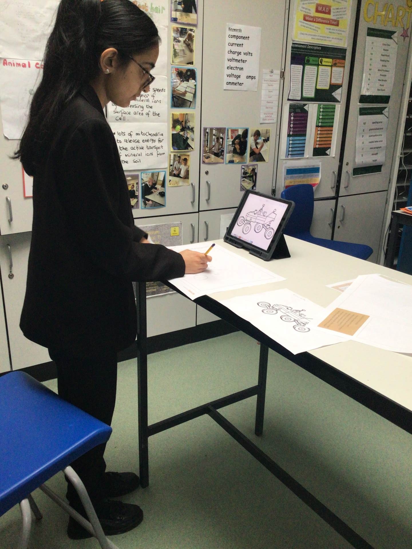 In Science, the class has been learning about acids and alkalis, they have been completing experiments to discover if a liquid is acid, alkali, or neutral. They all worked incredibly well, ensuring they are following all lab safety measures such as goggles. We also participated in Mars day and National Science week, where they made PowerPoint presentations and posters about Mars and designed their own Mars rovers, which was a particularly fun lesson.