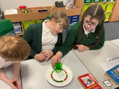In Science, children studied the circulatory system in detail. They learned about the functions of red and white blood cells, plasma and platelets, and identified arteries, veins and capillaries. They also explored how the heart pumps blood around the body and why this system is essential for survival. During Science Week, they took part in practical investigations and hands-on challenges that encouraged curiosity and scientific thinking.